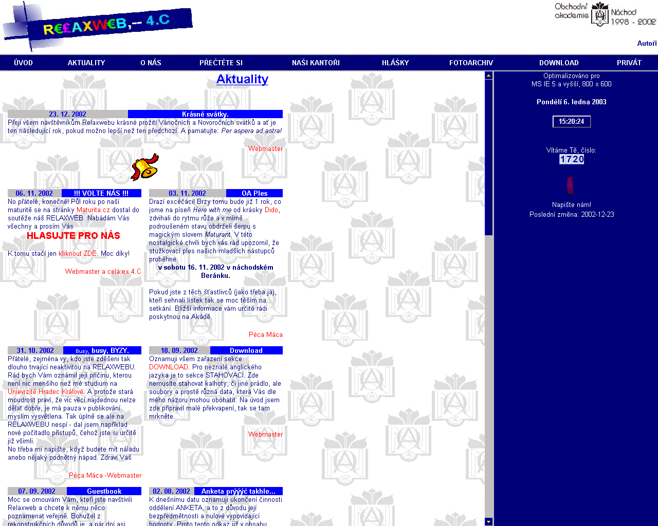 ![]() Školní časopis ECHO SŠPU a VOŠ, Hodonín (odkaz na současnou podobu stránek) |